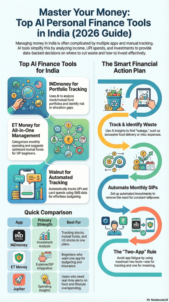 In this guide, you’ll learn the best AI tools for personal finance in India (2026)—what they do, why they work, and which one actually fits your life.
