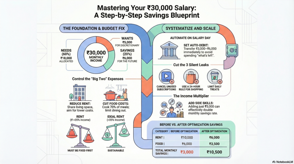 In this guide, you’ll learn exactly how to save money on ₹30,000 salary in India—step by step, using real numbers and practical actions.